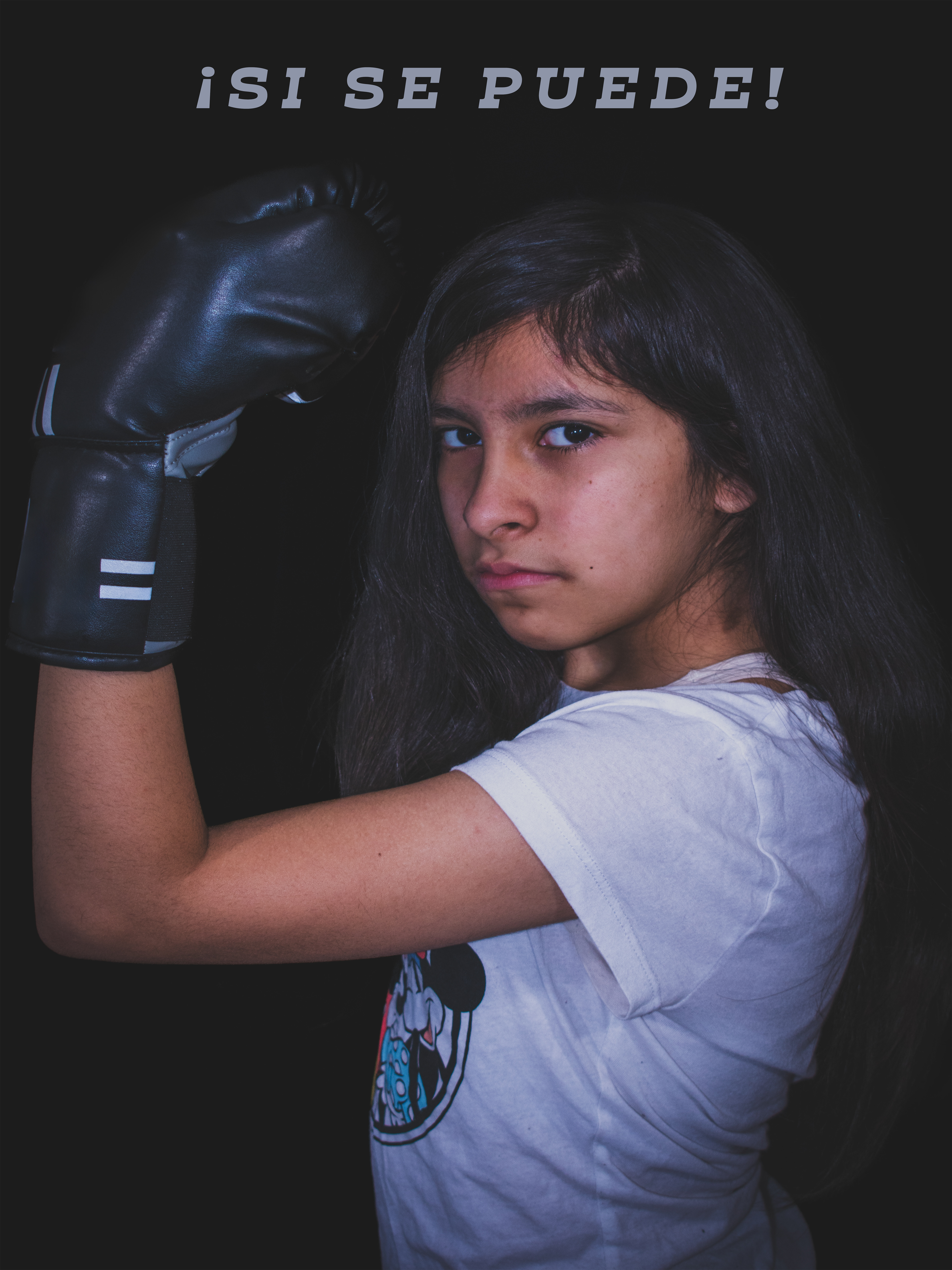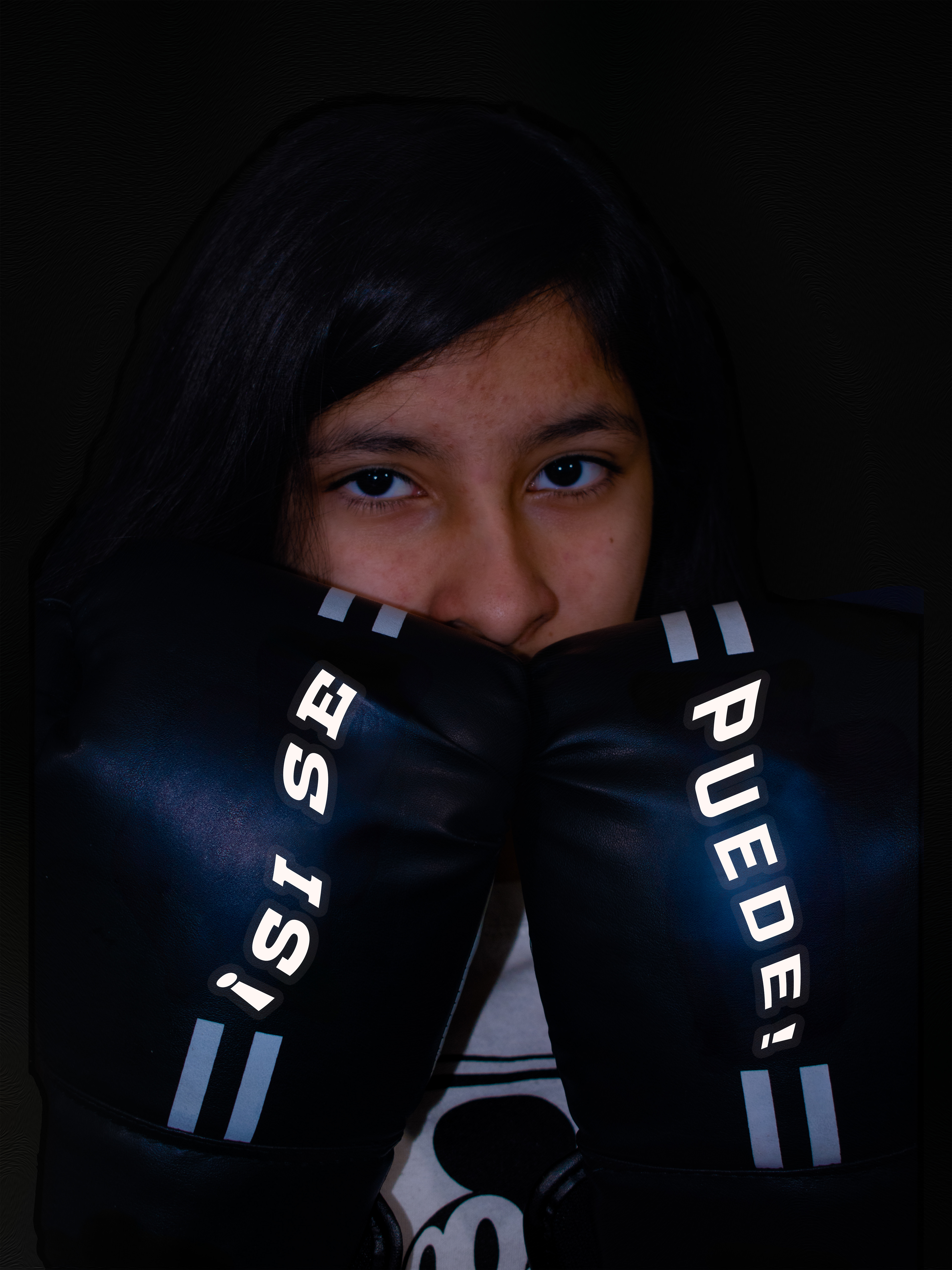My concept of Sí Se Puede approaches a feminist approach to challenge traditional gender roles and highlight the skills and determination of women in society. By focusing on a young girl with boxing gloves, this piece showcases that girls can not only enter male-dominated spaces but also excel in them. I aim to tell a story that inspires and empowers other girls and women, showing them that Sí Se Puede hacer lo que quieres.
